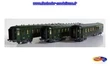 Coffret composé de 3 voitures OCEM parois lisses - Ep.IIIb - SNCF, proposé pa LS-Models. Le coffret comprend : 1 voiture A3 1/2 B5 myfi, verte, toit vert, littéral SNCF jaune joncquille, n° 4881 --- 1 voiture B10 myfi, verte, toit vert, littéral SNCF jaune joncquille, n° 44910 --- 1 voiture B10 myfi, verte, toit vert, littéral SNCF jaune joncquille, n° 44918. Roulement irréprochable, gravure de qualité et intérieur aménagé. Attelages NEM à élongation. 3 sachets de sur-détaillage fourni (1 par voiture). Exemplaire unique !