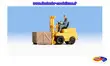 Boîte contenant un magasinier sur son chariot élévateur avec chargement, produit par NOCH.