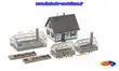 Exploitation horticole proposée par FALLER. Ce kit de montage contient 130 pièces détachées dans 9 couleurs, pièces pour fenêtre, 1 masque et 1 notice de montage. Dimensions : 108 x 90 x 110 mm, 110 x 68 x 67 mm, 71 x 42 x 63 mm (2 x), 90 x 21 x 10 mm (2 x).