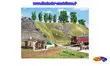 Passage à niveau manuel, pour voie unique et petite maison de garde barrières, proposés par AUHAGEN. La boîte contient également vélo, poubelle et échelle. Reproduction conforme à l'original situé sur la route reliant les villes de Flöha à Reitzenhain. Dimensions maison garde-barrières : 90 x 60 x 50 mm, et passage à niveau : 150 x 130 mm.