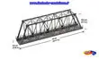 Pont ferroviaire en plastique rigide, permettant le passage d'une voie, proposé par NOCH. Belle imitation d'un pont métallique. Longueur 36 cm, largeur 6,5 cm et hauteur 10,5 cm.