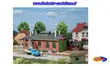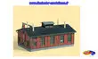 Remise pour deux locomotives avec portique, proposée par AUHAGEN. Modèle à l'échelle HO, mais peut aussi convenir pour le smodèles à voie Etroite HOe. Ce kit est réalisé sur un la base d'un modèle original Ssaxon, le compartiment locomotive ne convient que pour les locomotives de petit gabarit. Les portes sont mobiles manuellement. La grue à portique fermée était typique pour les réparations dans les petites usines de locomotives à vapeur. Entraxe des rails 44 mm. Utilisation possible de rails à voie étroite avec une hauteur de profilé de 2,1 mm. Hauteur du portail sans rail 44 mm. Largeur libre du portail 32 mm. Pour des locomotives de longueur n'excédant pas 135 mm. Dimensions : 170 x 110 x 90 mm.