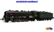 Locomotive à vapeur 141 R 420 avec tender à charbon, livrée vert/noir, analogique, SNCF - Ep. V - proposée par JOUEF. Historique : Les 141 R furent commandées par la France aux Etats-Unis en 1340 exemplaires répartis en deux sous séries (141R 1 à 700 et 701 à 1340) avec chauffe au charbon ou au fuel afin de palier le cruel manque de locomotives à la fin de la deuxième guerre mondiale. Livrées à 1323 exemplaires (17 machines et leurs tenders ayant été perdus lors du naufrage du cargo qui les transportait) à partir de novembre 1945, elles furent grandement appréciées par les mécaniciens de la SNCF de par leur robustesse et leur confort d'utilisation pour l'époque. Présentes sur l'ensemble des régions de la SNCF ces machines ont effectué un service mixte voyageurs/marchandises jusqu'en 1974, leur radiation coincidant avec la disparition totale de la traction vapeur en service commercial à la SNCF.