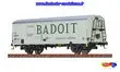 Wagon couvert réfrigérant "BADOIT", SNCF - Ep.III - immatriculé 506014, proposé par BRAWA. Attelages NEM à élongation. Un magnifique wagon reproduisant la grande marque BADOIT, très minutieusement reproduit et d'une qualité exemplaire. Le système de freinage composé de nombreux (patins de frein dans l'axe de la roue et système en soubassement) est particulièrement soigné. Roulement excellent. Un très très beau modèle signé BRAWA !