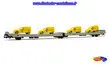 Wagon plat à 3 essieux Ladks, livrée grise, STVA, chargé de 4 voitures Citroën 2CV "La Poste" jaunes - Ep.IV - proposé par JOUEF. Attelages NEM à élongation.